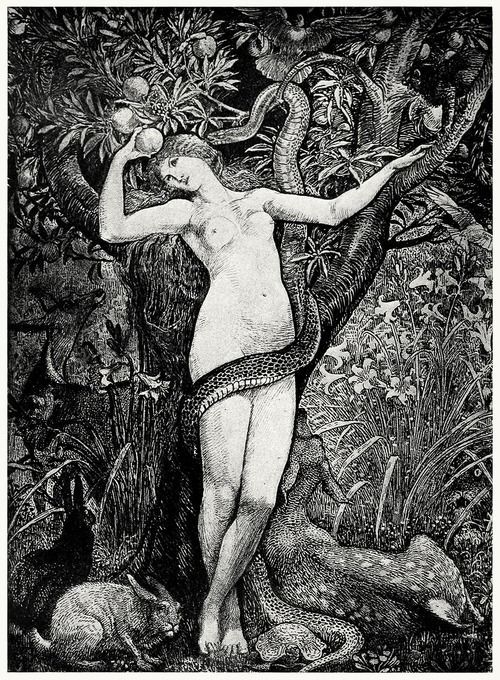 “Eve” by Walter Crane, from The graphic arts of Great Britain, by Malcolm C. Salaman & Charles Holme, London, Paris, New York, 1917.