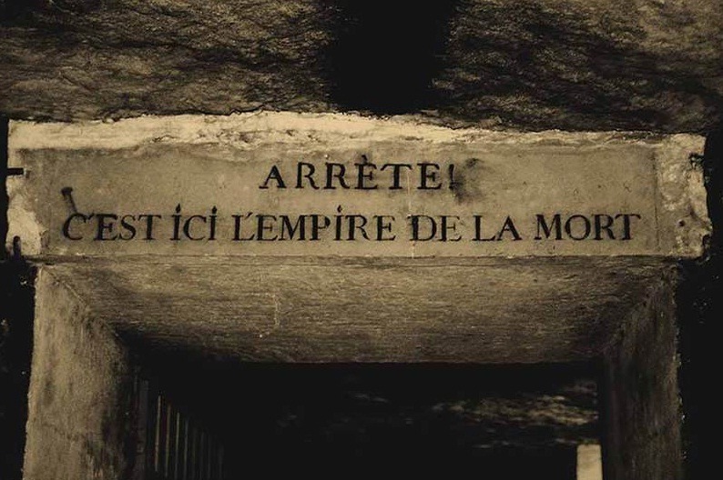 Image sixpenceee: “Stop! Here lies the empire of death.” Seen in the Paris Catacombs. Share this: Click to share on X (Opens in new window) X Click to share on Facebook (Opens in new window) Facebook Like Loading... Related