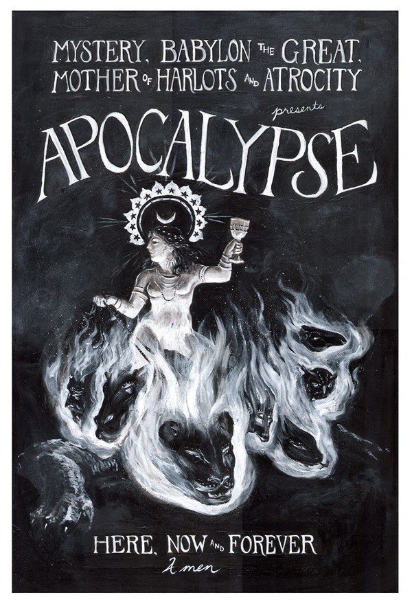 Babalon is the most central and most notorious of all the Goddesses of Thelema. At first glance, she is seemingly drawn from a single, exoteric source: The Book of Revelations. The text describing the Great Whore of the apocalypse is brief but rich in symbolism: she rides on a beast “having seven heads and ten horns,”[4] she is “drunken with the blood of saints,”[5] and is “arrayed in purple and scarlet.”[6] The text of Revelations goes on to explain that the vision of the Great Whore represents a “great city,”[7] Babylon (itself most likely an allegory for Rome). Crowley takes the exoteric meaning and makes it esoteric, rendering pshat into sod as it were, by literalizing Babylon still further, making her not a city, but a goddess and a personality.