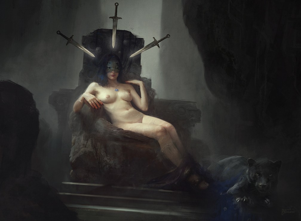 Ink and gouache on paper“Who is She that looketh forth as the morning, fair as the moon, clear as the sun and terrible as an army with banners?”