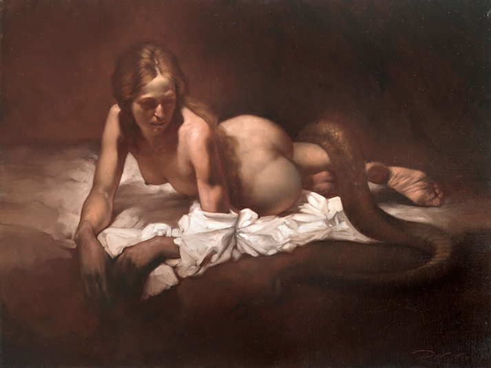 Lilith the Elder is the primordial mate of Samael. According to some texts, God castrated Samael to prevent him from becoming too powerful.[15] Because of this, Lilith and Samael can only couple with the assistance of a “blind serpent” named Tanin’Iver[16]— a unique kind of martial aid. Indeed, Samael’s incompleteness without his feminine mate is often emphasized. The Zohar does not describe Samael as castrate, but rather as headless, cleaving together with Lilith in order to be whole. The same passage states that “in the left side, the female is larger than the male.” [17]