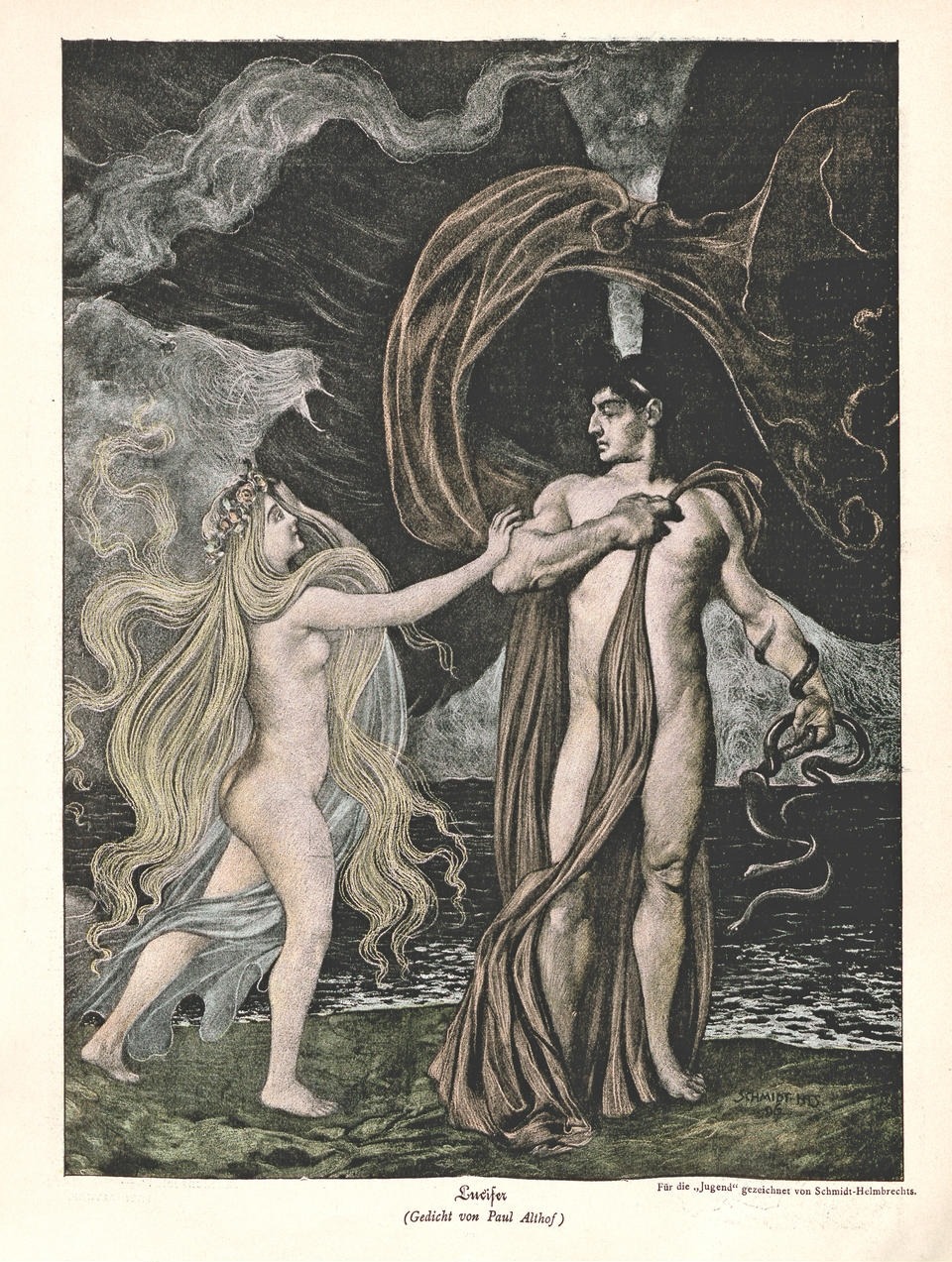 Lucifer, illustration by Carl Schmidt-Helmbrechts (”Jugend” magazine) for a poem by Alice Gurschner (aka Paul Althof), University Library of Heidelberg.